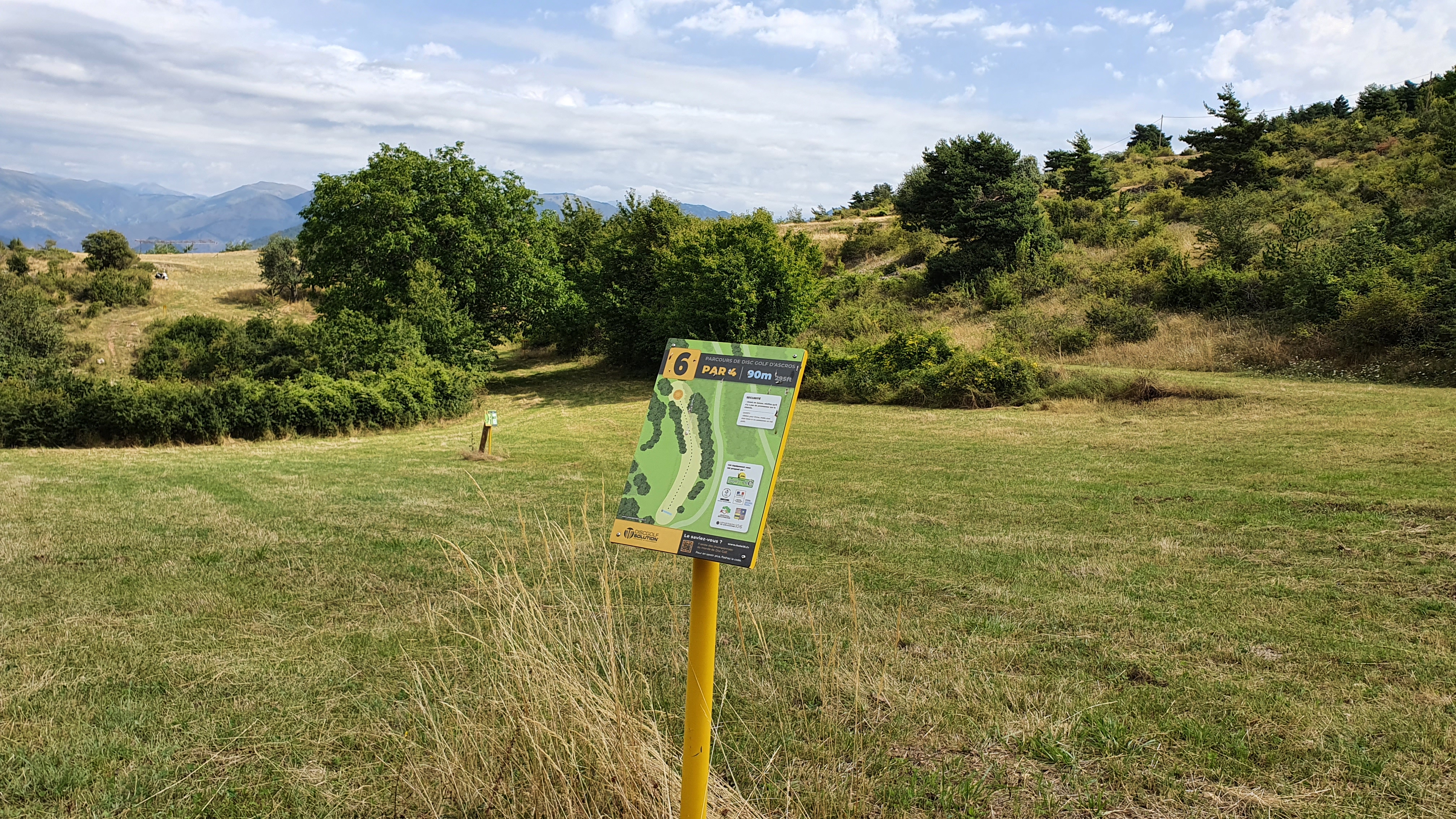 Belles vues du haut de la montagne. Difficile d'y accéder en voiture ; les routes de montagne sont difficiles. Parcours plus petit, seulement 6 trous. L'herbe était bien coupée dans certains trous, d'autres trous étaient assez touffus. Buissons très épineux, faites attention où vous jetez vos disques. Impossible de trouver le teepad pour le trou 3. Le panier du trou 1 a été écrasé par un tracteur. Globalement, c'est très cool d'avoir un cours ici, un voyage qui vaut la peine d'être fait si vous êtes dans la région.